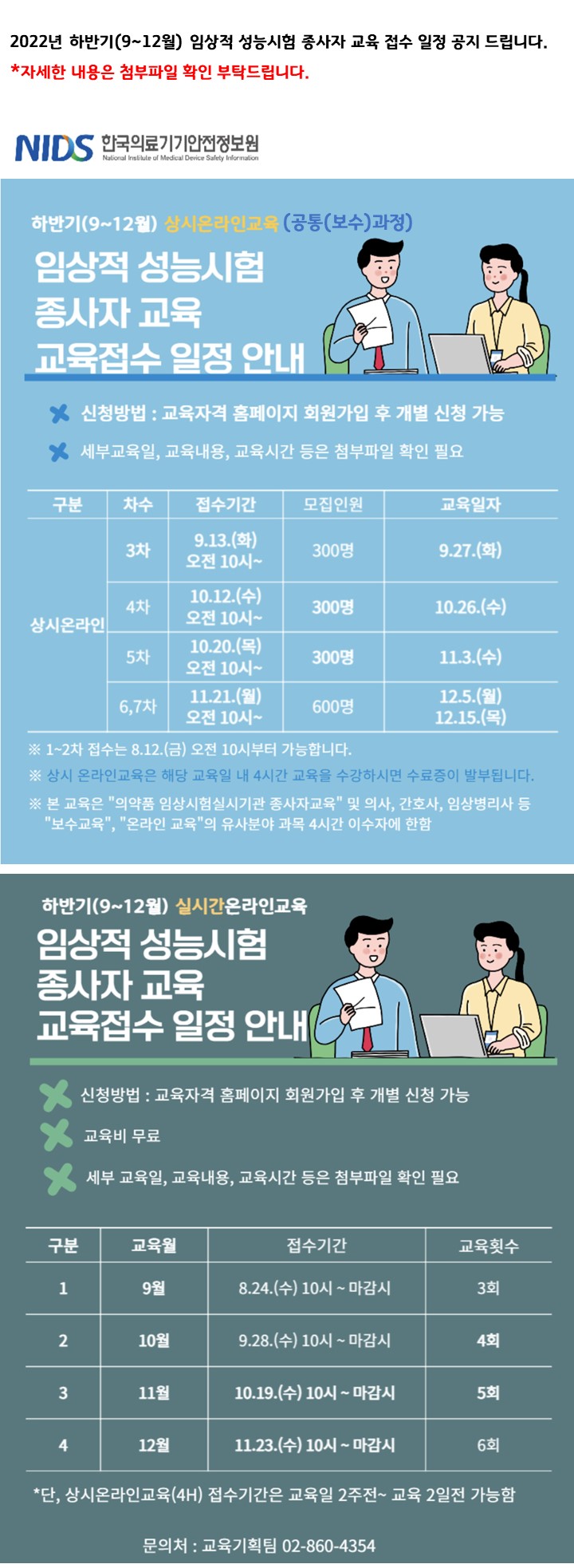 [교육안내] 하반기(9~12월) 임상적 성능시험 종사자 교육 접수 일정