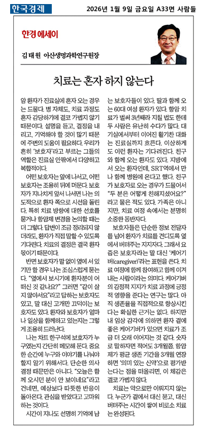 [NEWS] 한경에세이 "치료는 혼자 하지 않는다" (한국경제 A33면 사람들/2026.01.09 금)