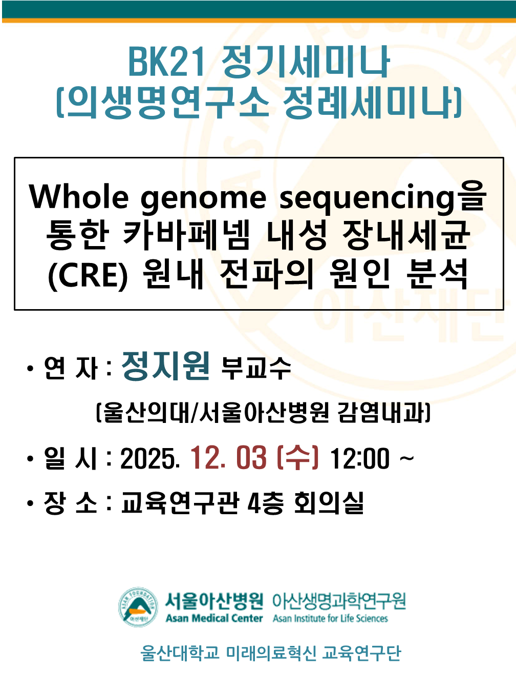 의생명연구소 정례세미나 (12/3, 수)